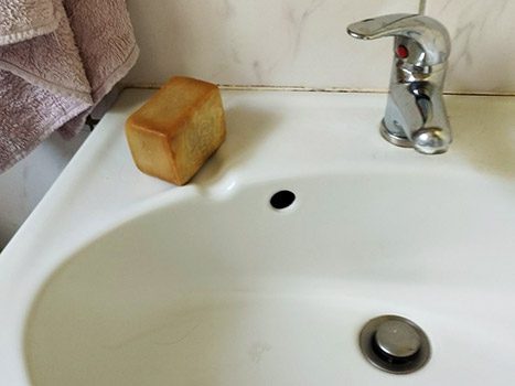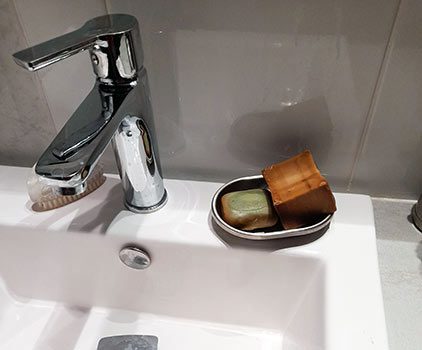 1. Rincer le savon si besoin, puis le laisser sécher à l’air libre sur un porte-savon bien drainé.