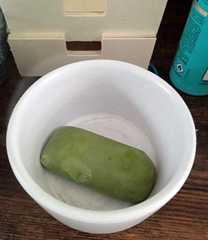 • Après cuisson, la pâte est découpée en cubes puis séchée naturellement pendant environ 9 mois