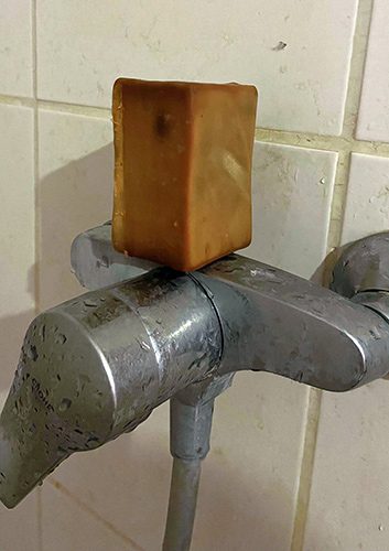 1. Rincer le savon si besoin, puis le laisser sécher à l’air libre sur un porte-savon bien drainé.